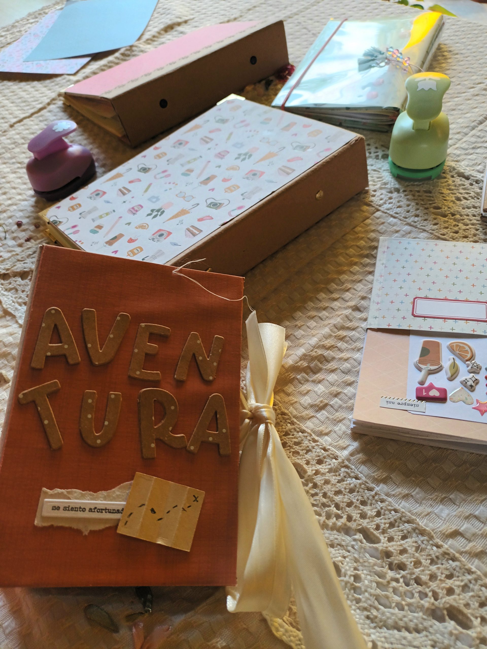 El scrapbooking es una forma de crear álbumes, cuadernos y tarjetas, de recortes personalizados mediante la combinación de fotografías, papeles bonitos, adornos y otras técnicas de manualidades.