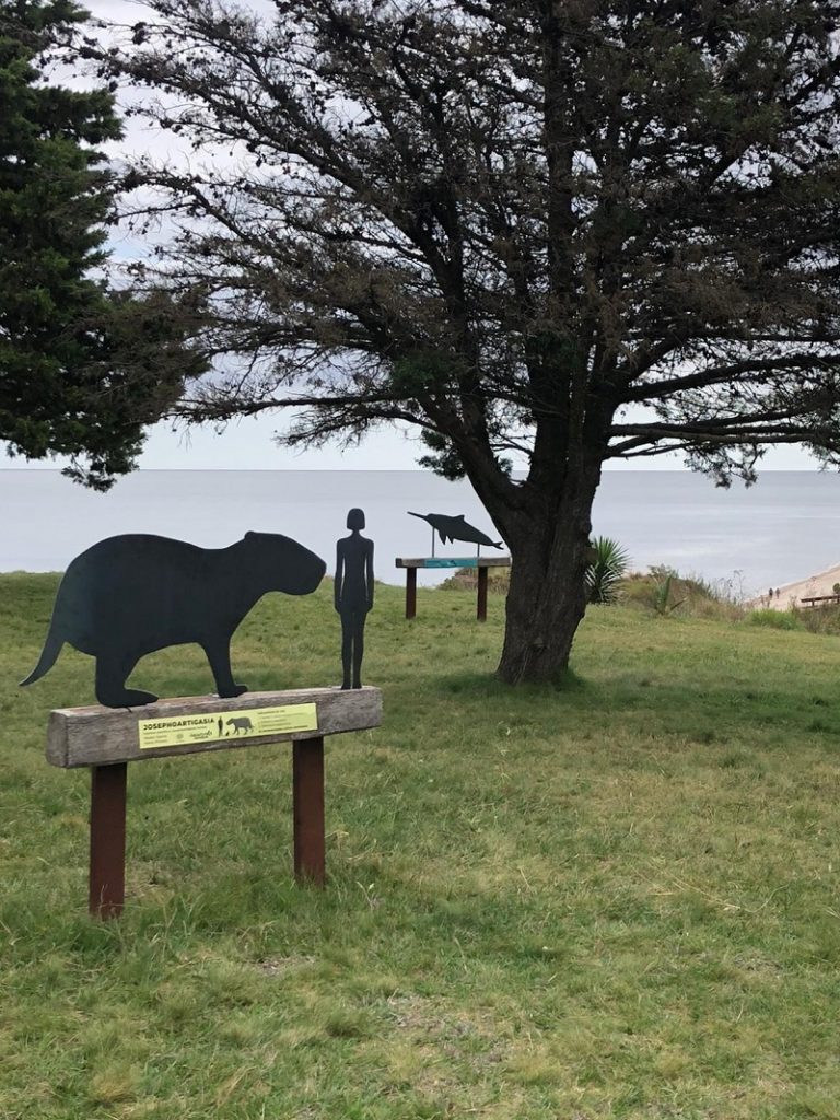 Las esculturas de Sin Pavimento en el Deck de Ordeig (parada 14), hacen que a través de la realidad aumentada, los visitantes tengan la oportunidad de conocer especies de millones de años, como el Josephoartigasia, el roedor gigante más grande que se haya encontrado en el mundo, y la *Franciscana*, un delfín que hoy está en peligro de extinción.